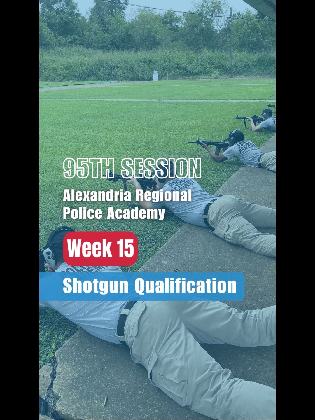 Cadets in the 95th session of the Alexandria Regional Police Academy completed their Shotgun Qualification Training during Week 15. This training was an important step in their preparation for law enforcement responsibilities. Graduation is scheduled for tomorrow.