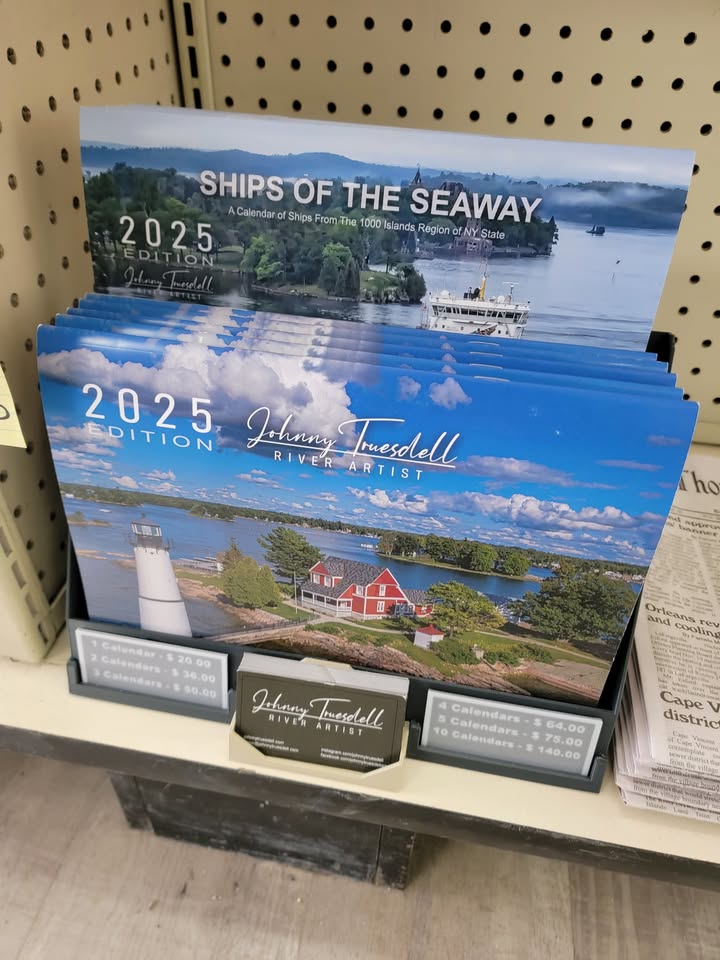 River artist Johnny Truesdell has released the 2025 edition of *Ships of the Seaway: A Calendar of Ships From The 1000 Islands Region of NY State.* The calendar features artwork showcasing the ships of the Thousand Islands region and is available for purchase both in-store and online.